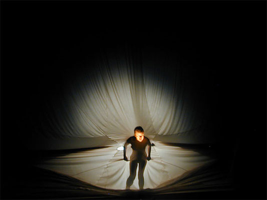 Il y a, d'abord, dans ce spectacle, une idée scénographique d'une beauté et d'une intelligence à couper le souffle : un grand drapé d'étoffe blanche qui, quand tout commence, tapisse le sol et le mur du fond de la cellule de Suzanne Simonin, cette cellule transparente comme gaze, comme une membrane mentale. Puis l'immense tissu se soulève et vient recouvrir, envelopper, enfermer Suzanne: grand drap blanc qui sera tour à tour camisole de force, robe de mariée et linceul.