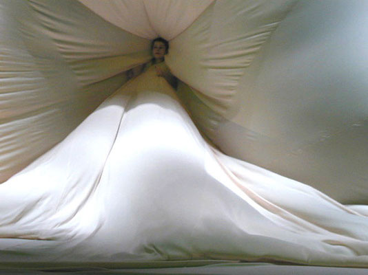 La voix de Suzanne jaillit par l’interprétation éminemment physique de Marie-Laure Crochant qui engage son corps dans une lutte viscérale contre l’immobilisation et la disparition, lutte qui se matérialise dans le combat contre l’engloutissement dans le décor de tissu blanc évoquant la soutane des bonnes-sœurs autant qu’une camisole psychiatrique ou bien encore la page blanche sur laquelle Suzanne s’acharne à écrire ses malheurs. Idée magnifique, conjuguant une double dimension, esthétique et symbolique, d’une puissance immédiate, loin de tout réalisme. Le texte accède ainsi à un niveau de réception qui dépasse l’anecdote contextuelle et résonne aujourd’hui dans son caractère intemporel et universel. C’est choquant, bouleversant et stupéifant.