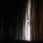 La paroi de cheveux a une taille monumentale ( 5 x 5.5 mètres). Elle est réalisée en couches multiples dont la texture profonde interagit avec la vidéo. Les images de peau et de fragments de corps s’enfoncent dans la masse de cheveux. Entrainées par le mouvement des danseuses, elles se creusent, frémissent, s’étirent et s’envolent. La paroi, répondant aussi au son, prend corps comme un troisième acteur entremêlé avec les corps des danseuses.